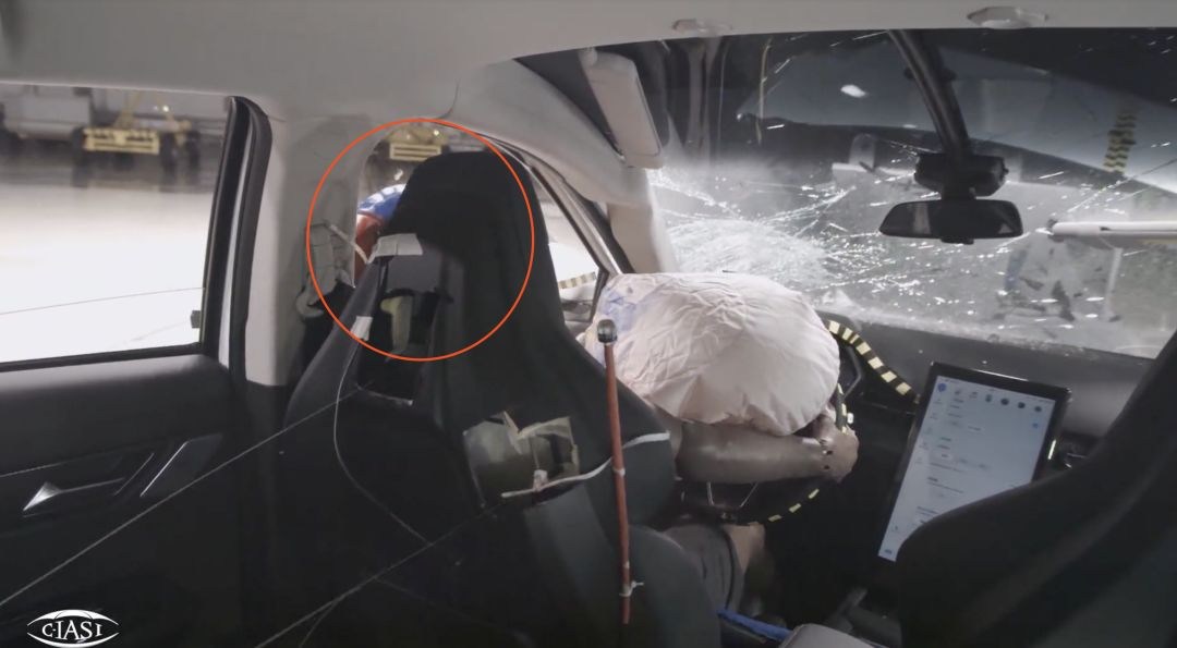 从碰撞的画面中可以看到,小鹏G3的A柱强度还是不错的,假人的生存空间也没有被压缩,本来是应该能取得G的,但是为什么最后只有A了呢?请看下面: